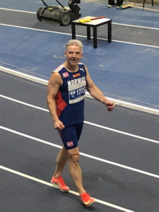 Jeg var veldig glad for å ta hjem gullet i M35 klassen på 60m, som første nordmann noensinne. Men at jeg gjerne skulle sett tider ned på 6-tallet, uttaler Hallgeir.