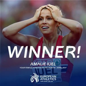 Amalie Iuel gikk til topps i European Athletics kåring av månedens kvinnelige utøver for april 2017. Amalie har hatt en fantastisk start på årets sesong, og løp forrige måned inn til ny norsk rekord p…